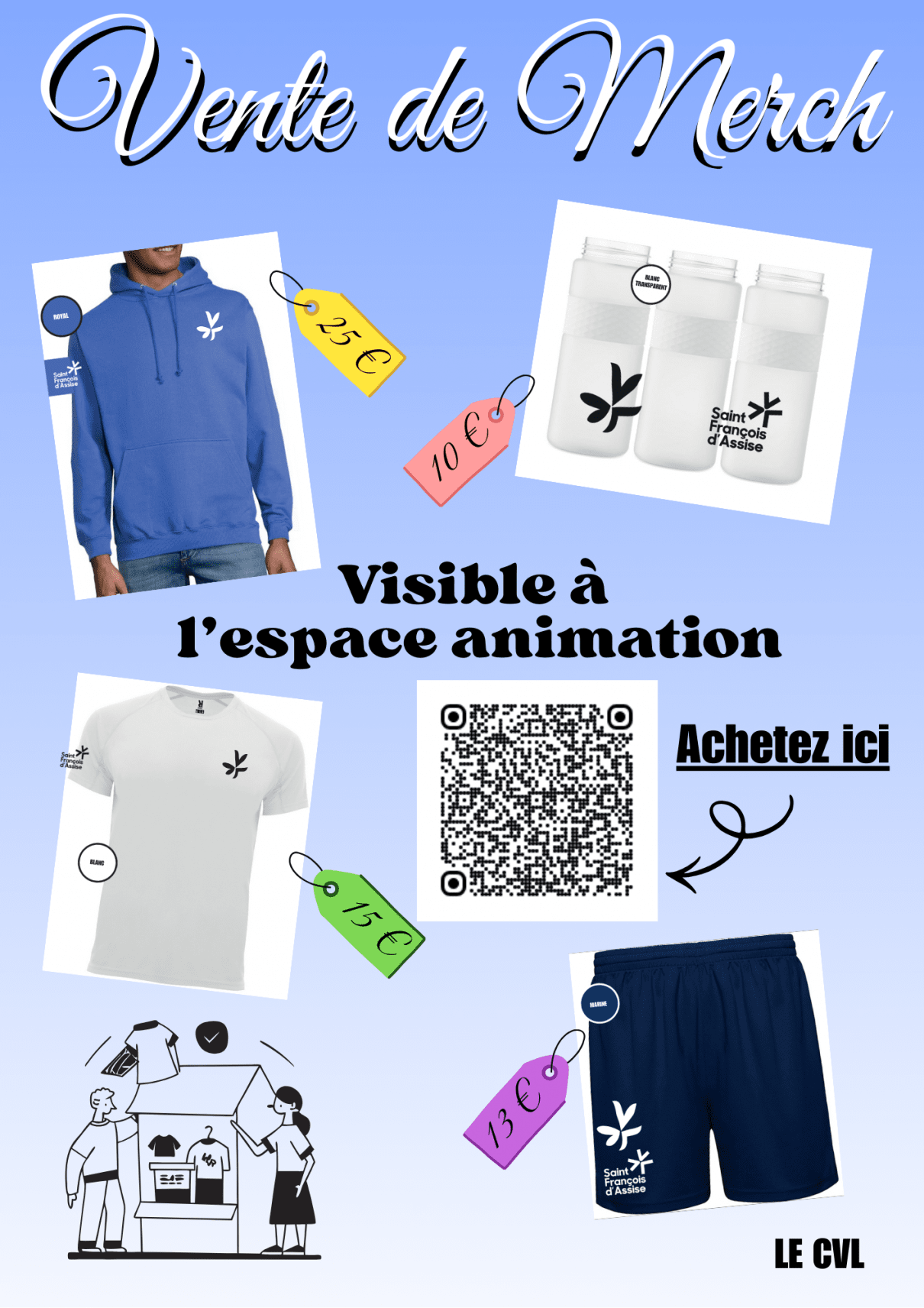 Le CVL organise à nouveau la vente de sweats à l'effigie du lycée Saint François d'Assise.Nouveautés cette année, un maillot et un short de sport ainsi qu'une gourde.Pour vos commandes, il suffit de cliquer sur ce lien ou de scanner le QR code situé sur l'affiche.La date limite de commande est le dimanche 22 mars 2026.